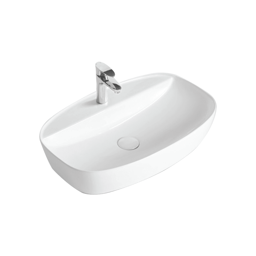 Ceramic Counter Top Wash Basin (600mm x 390mm x 130mm) – Glossy White